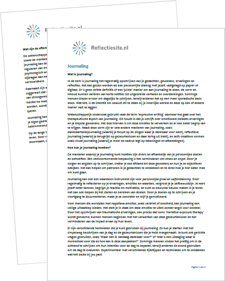 Wat is journaling? In de kern is journaling het regelmatig opschrijven van je gedachten, gevoelens, ervaringen en reflecties. Het kan gezien worden als een persoonlijke dialoog met jezelf, vastgelegd op papier of digitaal. Er is geen strikte definitie of een ‘juiste’ manier om aan journaling te doen; de vorm en inhoud kunnen variĆ«ren van korte notities tot uitgebreide verhalen en … Continue reading Journaling