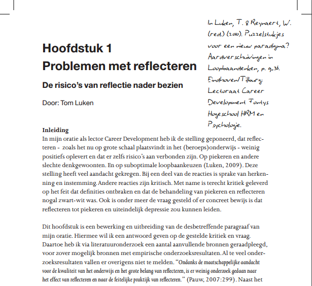 In dit artikel is betoogd dat leerlingen/studenten op alle niveaus van het beroepsonderwijs te veel moeten reflecteren. Het is, ogenschijnlijk zonder veel kritische reflectie en sturing, in hoog tempo een hype geworden.